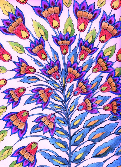 Materials: Purple paper, Black Micron Pens Size 05, White Uni-Ball Signo Broad UM-153 Gel Pen, Gold Sharpie Paint Marker Medium